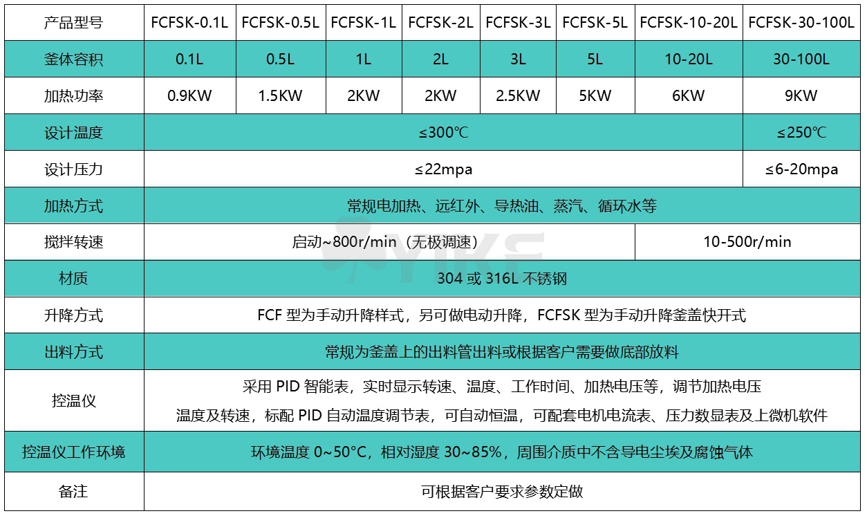 FCFSK快开式耐压不锈钢反应釜系气-液、液-液、液-固或气-液-固三相化工物料进行化学反应的搅拌反应装置,可使各种化工物料在较高的压力、真空、温度下充分搅拌,以强化传质和传热过程。。